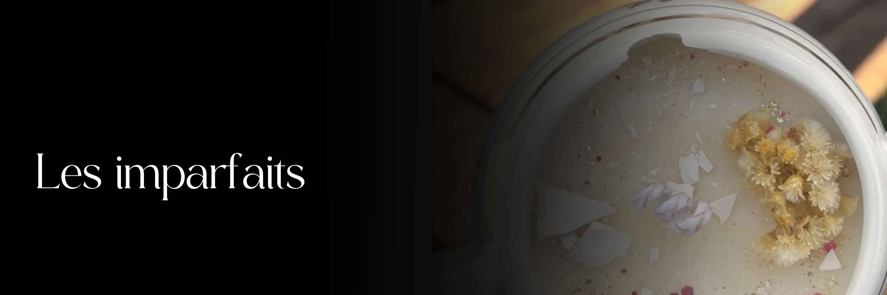 "Les Imparfaits" est une sélection unique de bougies artisanales et autres créations parfumées proposées à prix réduit. Chaque pièce conserve la qualité exceptionnelle de nos produits : cire végétale, parfums de Grasse sans CMR ni phtalates, et finitions soignées. Plutôt que de jeter des bougies aux contenants légèrement abîmés ou des articles en surplus, nous vous offrons l'opportunité de les acquérir à des tarifs avantageux. C'est une occasion idéale pour vous faire plaisir tout en adoptant une démarche écoresponsable. Quantités limitées !